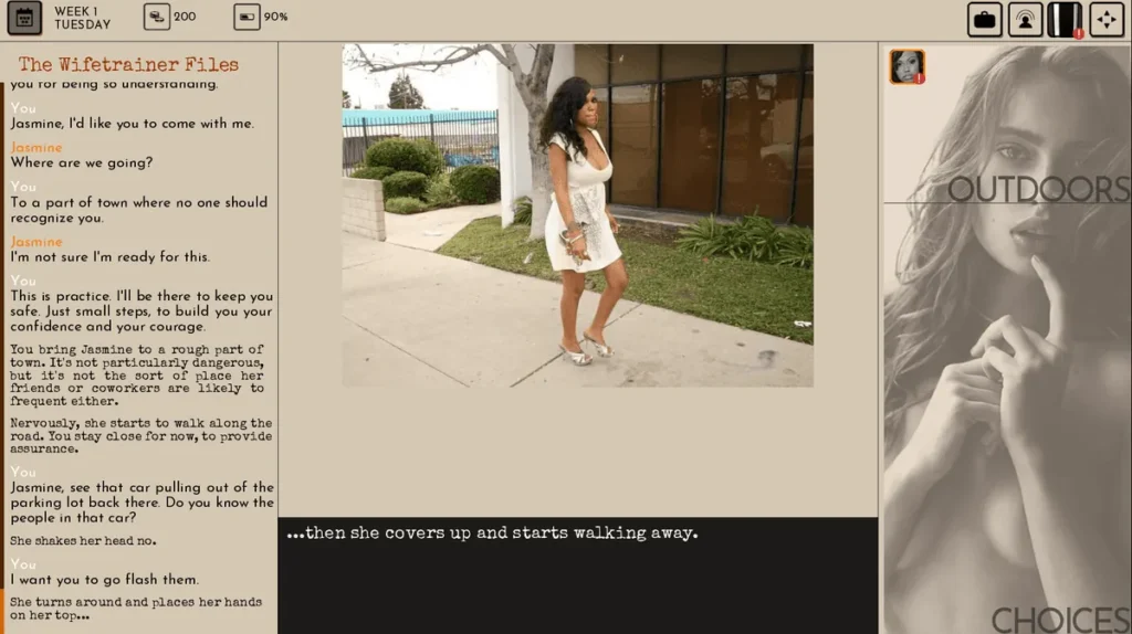 The Wife Trainer Files gameplay mechanics throw out the rulebook of traditional narrative games. Forget point A to point B. Here, you inhabit the role of a photographer in a living, breathing city, and the narrative unfolds based on where you go, who you talk to, and what you choose to do. This is a true sandbox adult game experience.